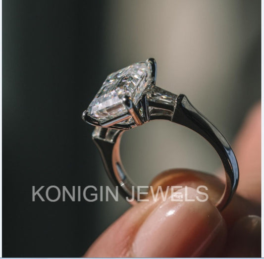 1CT Emerald Shape Colorless Moissanite Diamond Trilogy Gold Ring For Her