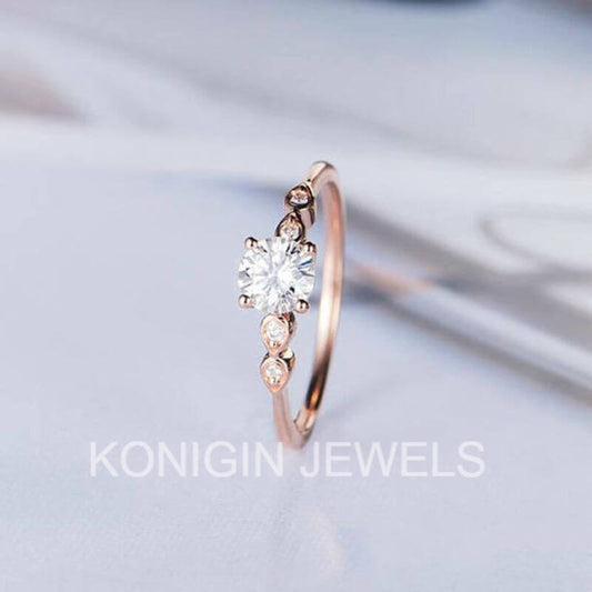 1 CT Round Shape Colorless Moissanite Diamond Gold Ring For Girls