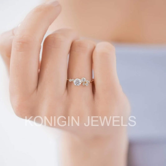 5.5mm Round Shape And 0.35CT Oval, Round Shape Moissanite Diamond Gold Ring