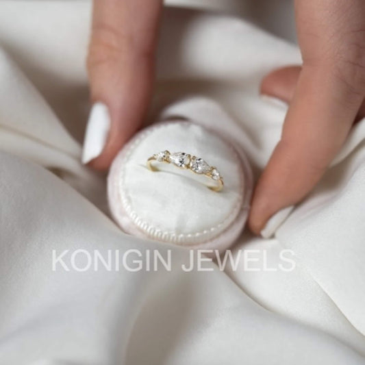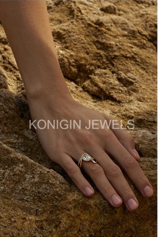 1CT Pear Shape Colorless Moissanite Diamond Gold Ring Gift For Her
