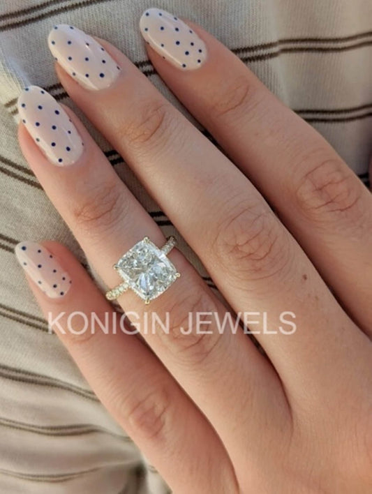 1CT Cushion Shape Colorless Moissanite Diamond Gold Engagement Ring