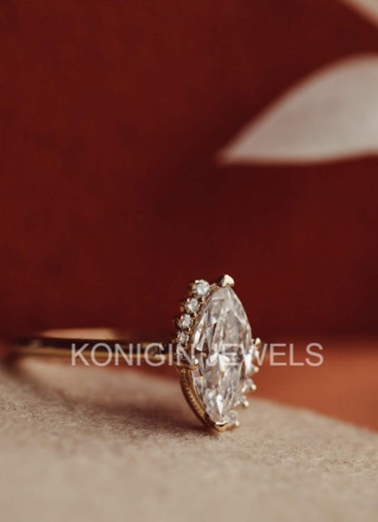 1CT Marquise Shape Colorless Moissanite Diamond Gold Ring For Women