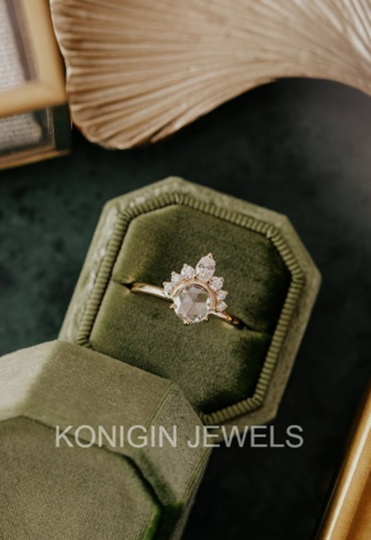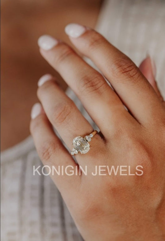 0.75CT Oval, 0.96CT Round And Marquise Shape Colorless Moissanite Daimond Gold Designer Ring