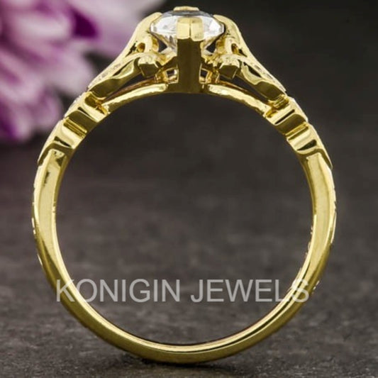 1.58CT Round Shape Colorless Moissanite Diamond Gold Unique Ring For Women