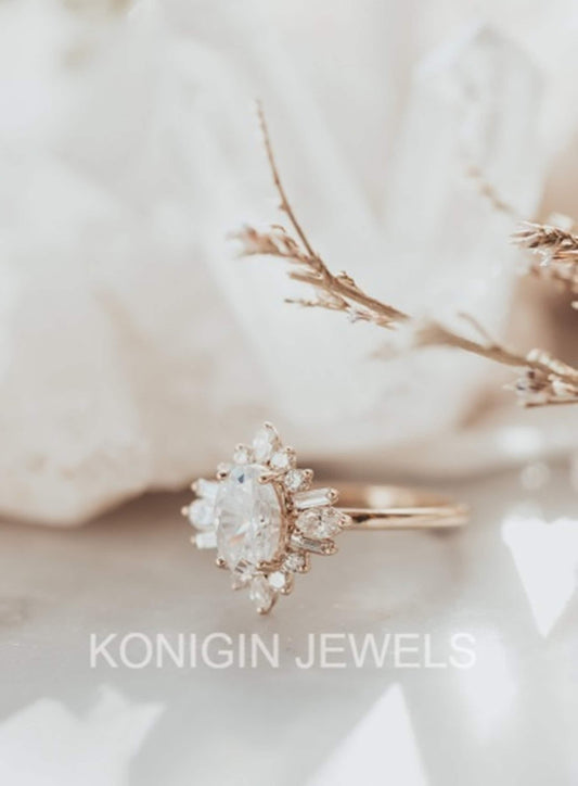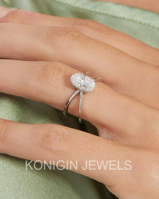 1CT Oval Shape Colorless Moissanite Diamond Gold Designer Ring For Her
