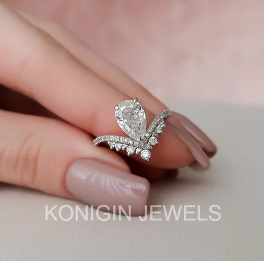 1.50CT Pear Shape Colorless Moissanite Diamond Gold Ring For Women