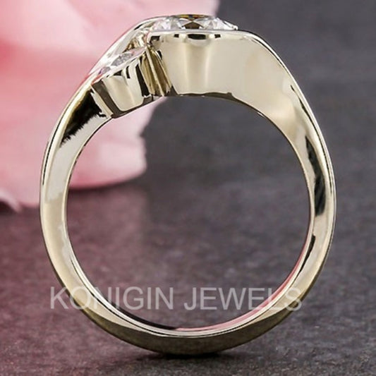 0.84CT Round And 0.36CT Marquise Shape Colorless Moissanite Diamond Gold Ring For Women