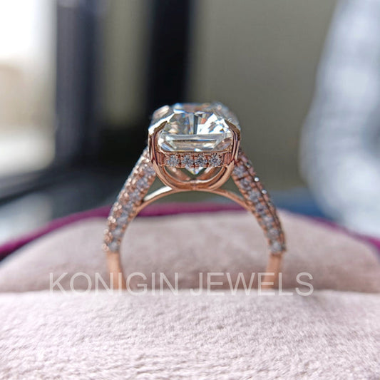 9mm Radiant Shape Colorless Moissanite Diamond Gold Engagement Ring For Her