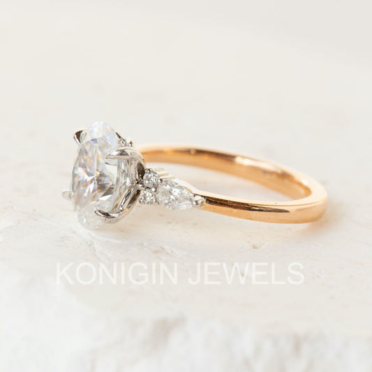 2CT Oval Shape Colorless Moissanite Diamond Trilogy Gold Ring For Women