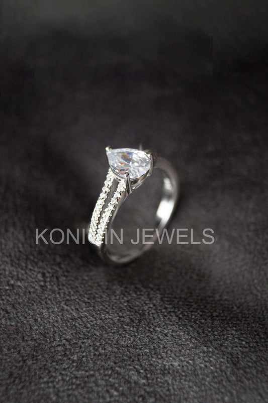 2 CT Pear Shape Colorless Moissanite Diamond Solitaire Statement Ring