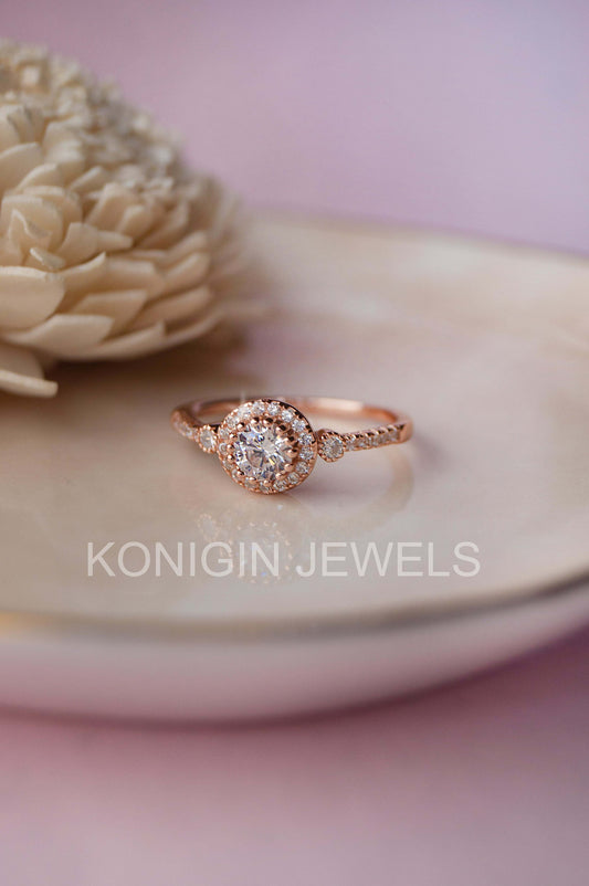 0.76CT Round Shape Colorless Double Moissanite Diamond Ring For Her