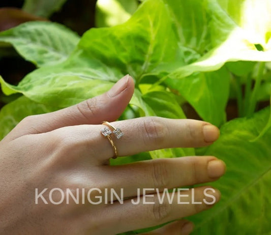 1CT Emerald And 0.75CT Oval Shape Colorless Moissanite Diamond Gold Toi Et Moi Ring