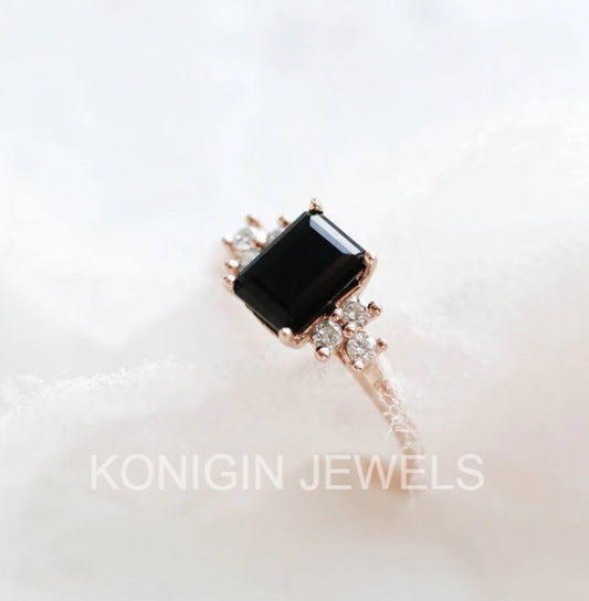 1CT Emerald Shape Black Color Moissanite Diamond Gold Ring For Women