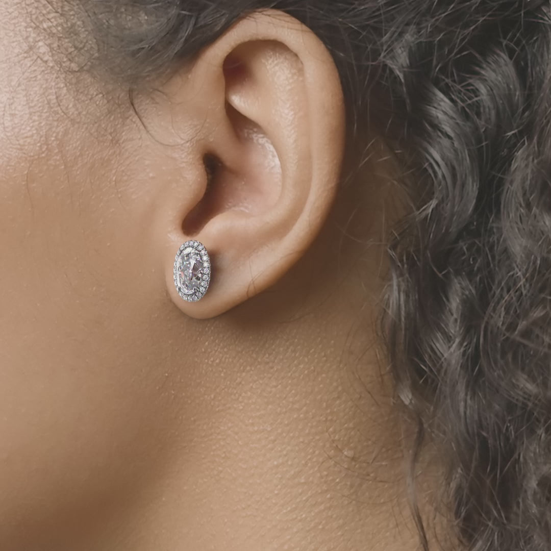 1CT Oval Shape Moissanite Diamond Halo Stud Earring For Her